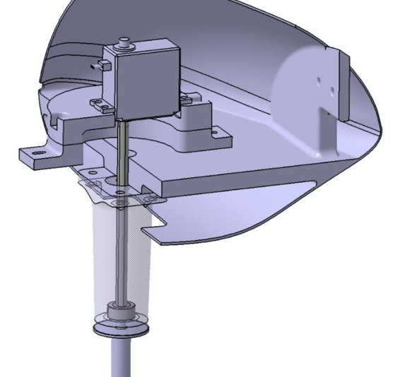 The design used quickly obtainable parts including a D-profile rotary shaft, aluminum servo horns, circular adhesive ready nuts, a shaft collar, and thread adapters, all to transmit servo torque from within the nose of the aircraft linearly to the NLG. To mount the servo within the nose of the aircraft, a modular, variable-height, design was created to facilitate easy reponsitioning of the servo relative to the ground in the event of a under- or over-sized cut on the shaft.